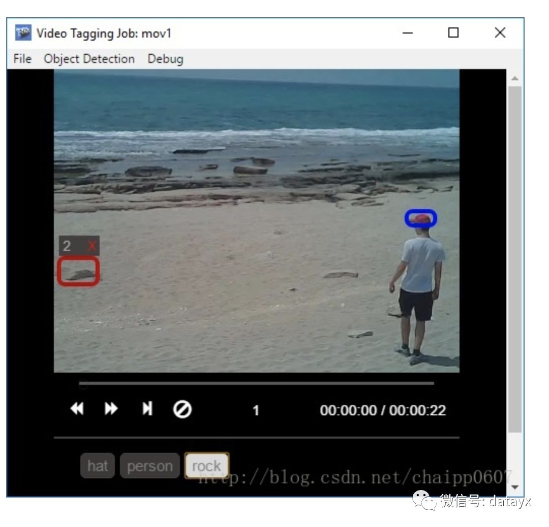 比较特别的是,它可以做视频的标注,比如一个 25fps 的视频,只需要隔 100 帧左右手动标注一下物体的位置,最后在整个视频中就能有比较好的效果。这依赖于软件集成的 opencv 的追踪算法。